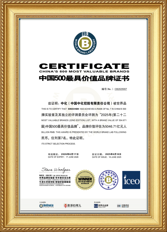 大会揭晓了2025年《中国500最具价值品牌》榜单。中国中化以超五千亿元品牌价值位居第七位,较2024年4759.06亿元品牌价值稳步提升首次突破五千亿元。